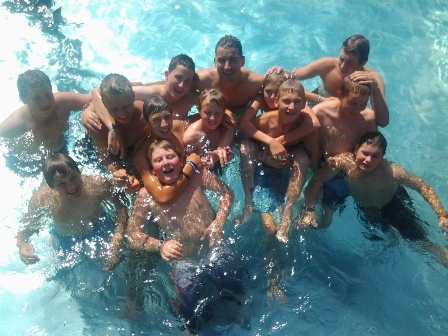 Das warten auf die Siegerehrung vertrieb sich die FJ Hollenthon mit Betreuern und einigen mitgereisten Fans im Allwetterbad in Pinkafeld.