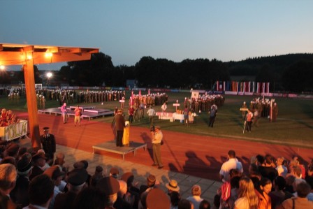 Gegen 19 Uhr startet dann der Einmarsch ins Stadion zur Siegerehrung und Schlussfeier der 19. Bundesfeuerwehrleistungsbewerbe. Nach einigen Ansprachen der zahlreich erschienenen Ehrengäste wurde schließlich mit der schon sehnsüchtig erwarteten Siegerehrung begonnen.