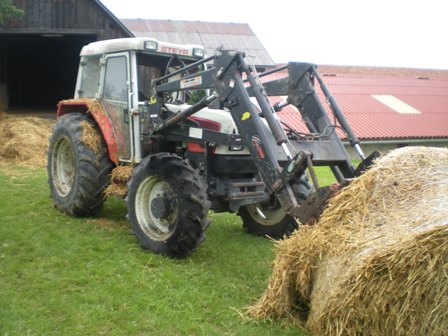 Am 24. Mai wurde die Freiwillige Feuerwehr Obereck um 13:25 zu einem Brandeinsatz alarmiert. Bei Familie Schwarz (Obereck 5) stand ein Traktor in Flammen. Unser Kammerad Franz Schwarz war gerade dabei mit seinem Steyr 964 aus dem Stadl Stroh zu holen, als er diesen dabei bei laufendem Motor kurz verließ. Als er wieder zurück kam stand plötzlich das Armaturenbrett des Fahrzeuges in Flammen (vermutlich Kabelbrand). Zunächst versuchte er noch seinen Traktor irgendwie aus der Scheune zu fahren, doch die Kabine war bereits zu verraucht. Daraufhin eilte er sofort zum naheliegenden Gerätehaus der FF Obereck. Auf dem Weg dorthin alarmierte er bereits übers Handy die Feuerwehr. Er schnappte sich Feuerlöscher und Einsatzbekleidung aus dem Gerätehaus und fuhr unser Löschfahrzeug zu seinem Stadl. Zunächst wollte er den Brand mit zwei Feuerlöschern in den Griff bekommen, diese waren jedoch schnell verbraucht, da der Brand inzwischen auch auf einige der naheliegenden Strohballen übergesprungen ist. Als Franz mit dem leeren Feuerlöscher aus dem bereits stark verqualmten Stadl kam trafen auch schon die ersten Mitglieder der FF Obereck am Einsatzort ein. Sofort wurde eine Löschleitung vom Löschwassertank unseres KLFs gelegt. Mit den 800l Löschwasser gelang es den Einsatzkräften aus Obereck ein weiteres Ausbreiten des Feuers zu verhindern und den Brand einigermaßen unter Kontrolle zu halten bis die weiteren Einsatzkräfte eintrafen (zunächst Thal, dann Hollenthon und Gleichenbach). Die FF Thal legte dann sofort eine weitere Löschleitung von ihrem Tanklöschfahrzeug und setzte die Löscharbeiten fort. Die FF Hollenthon stellte inzwischen einen Atemschutztrupp bereit und drang mit einer Löschleitung von der unteren Seite in das Gebäude ein. Einige Mitglieder der FF Obereck organisierten inzwischen einen weiteren Traktor um die restlichen Strohballen aus dem Stadl zu holen. Anschließend wurde auch der inzwischen gut abgelöschte Traktor ins Freie gezogen. Nach Beendigung der Löscharbeiten (ca. eine Stunde) überprüfte die FF Wiesmath das Gebäude noch mit ihrer Wärmebildkamera auf mögliche Glutnester.
