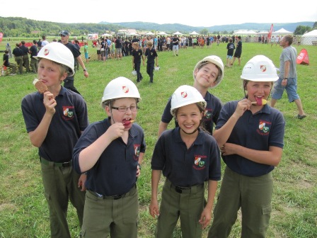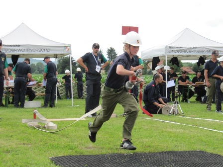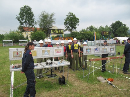 Nach der ersten Nacht im Zeltlager war am Freitag Vormittag Gruppenbewerb um das Leistungsabzeichen in Bronze angesagt. Die von Jugendbetreuer Peter Beisteiner und seinem Betreuerteam gut vorbereitete Gruppe legte auf der Hindernisbahn gleich mit einer Top-Zeit von 49,6 sek. - fehlerfrei vor. Nach einem gutem Staffellauf mit 73,84 sek., ebenfalls fehlerfrei, war bereits Bewusst, dass man mit dieser Leistung ganz weit vorne im Ergebnis zu finden sein wird.